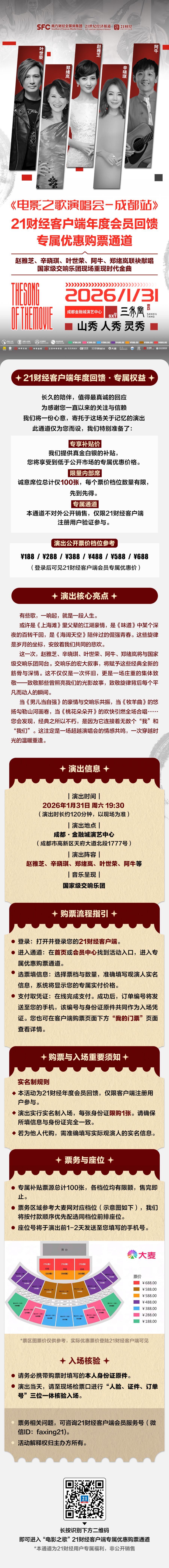 您可以通过下方海报,了解完整的演出信息、票价档位、购票须知及座位示意图,并进入专属通道。