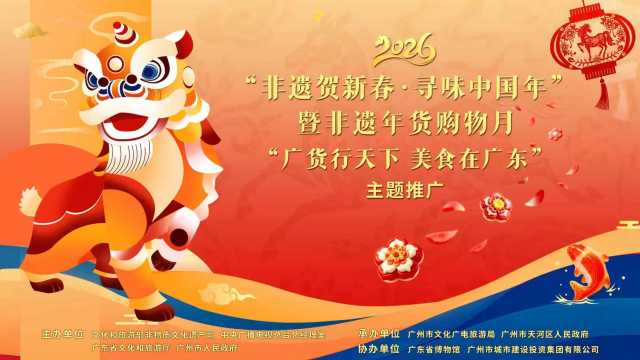 1月26日至28日,由文化和旅游部非物质文化遗产司、中央广播电视总台总经理室、广东省文化和旅游厅、广州市人民政府共同主办2026“非遗贺新春·寻味中国年”暨非遗年货购物月“广货行天下 美食在广东”主题推广将在广州拉开帷幕。