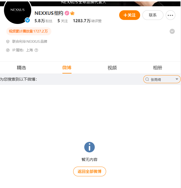 都市现场记者向 NEXXUS官方旗舰发布张雨绮名字后,客服回复: 关于张雨绮女士的相关舆论,品牌与其合作已于既定合约周期内自然结束,目前双方不存在代言及商业合作关系。