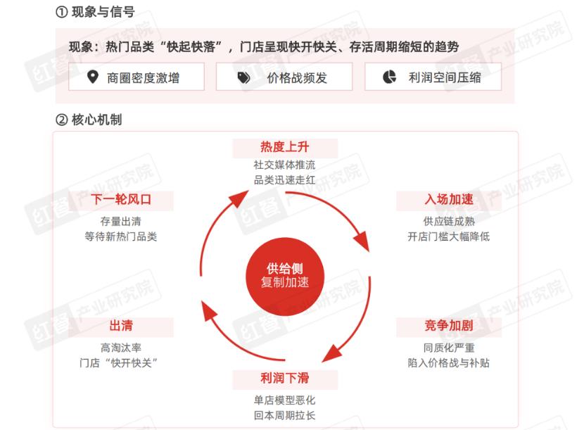 第三, 随着供应链成熟与信息透明度提升,加盟行业的复制速度显著加快。当热门品类出现时,大量跟风入场导致短期供给过剩,同质化竞争迅速演变为价格战与补贴战,单店利润被稀释、回本周期拉长,最终呈现“快开快关”的高淘汰率,推动门店生命周期整体缩短,这种现象在餐饮行业尤为突出。