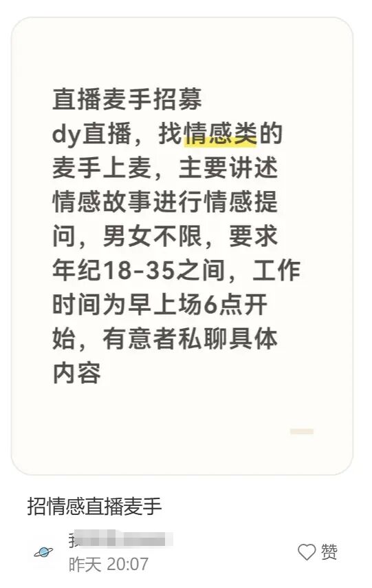 孵化一个情感主播最快只要三天,第一天面试,后面两天实战连麦找感觉,就足够让伤心人们乖乖交钱。