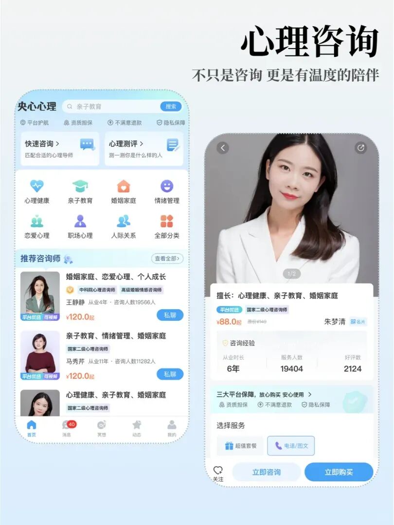 有平台提供平价咨询、5次简短对话尝试,还能灵活设定咨询时长,降低了专业帮助的尝试门槛。