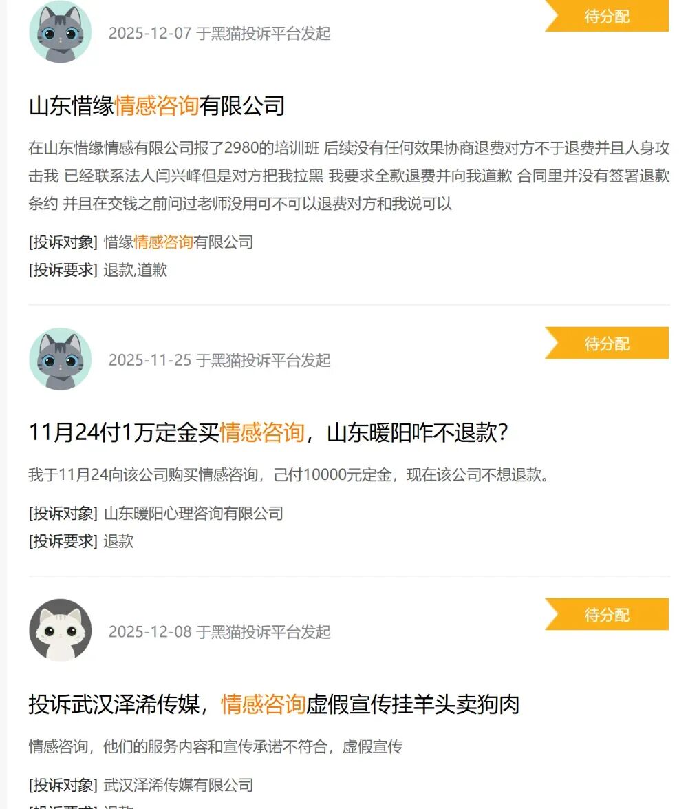 黑猫投诉平台涌入大量情感咨询投诉