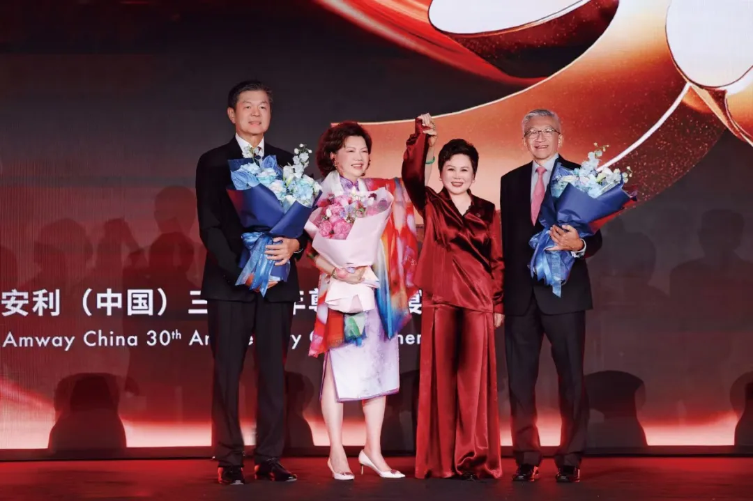 安利(中国)董事长兼总裁余放,特意邀请过往中国区掌舵者郑李锦芬、颜志荣、黄德荫依次亮相,与现场和线上嘉宾共同见证里程碑时刻。