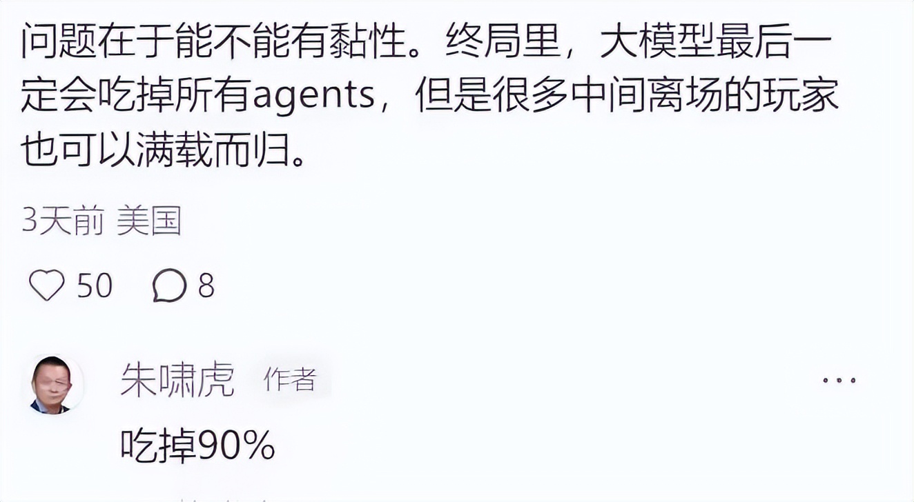 这是著名投资人朱啸虎曾炮轰智能体的一句话。是真是假,我们先不给出直接答案。