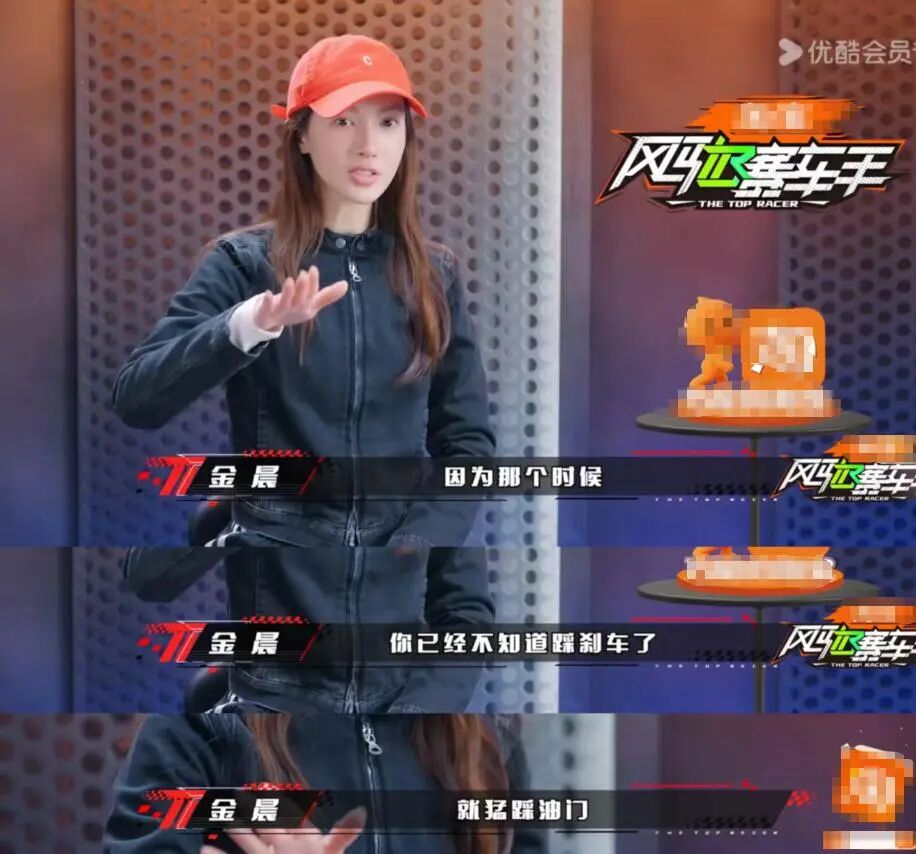 在后续采访中,金晨表示:“因为自己还没有太好的操控它(赛车),然后在不熟悉的情况下,踩油门又很猛,然后就冲到了那个轮胎上面。我看那个轮胎都飞起来了,然后我觉得这个方向盘就开始打不动了。我还在踩油门,因为那个时候你已经不知道踩刹车了,就猛踩油门。我就从那个轮胎上过去了。”