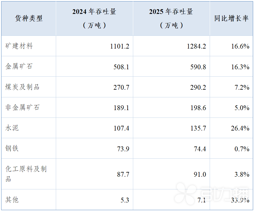 这一年,常熟内河港“忙”出新高度,港口码头上,各类货种“全面开花”。货种结构整体优化是支撑吞吐量增长的重要基础。数据显示,2025年常熟内河港主要货种实现全线增长,发展均衡性显著增强,其中矿建材料依旧是核心货种,吞吐量占比超四成,同比增长16.6%,成为拉动增长的主要引擎;水泥货种以26.4%的高增速领跑,展现出多元化运输需求的增长潜力,货种结构的持续优化,为港口的稳定运营提供了有力支撑。