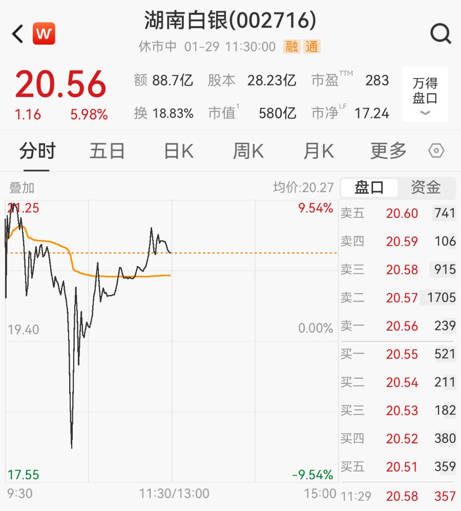 1月29日,A股贵金属、黄金板块剧烈震荡,指数早盘大涨后高台跳水,随后再度震荡拉升。个股方面,中国黄金五连板,晓程科技涨超10%领涨,西部黄金、湖南黄金涨停,招金黄金、四川黄金、中金黄金等多只概念股跟涨。此前备受市场关注的湖南白银盘中跌超7%后震荡拉升。