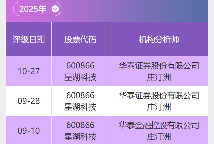 星湖科技评级纵览(近3次)