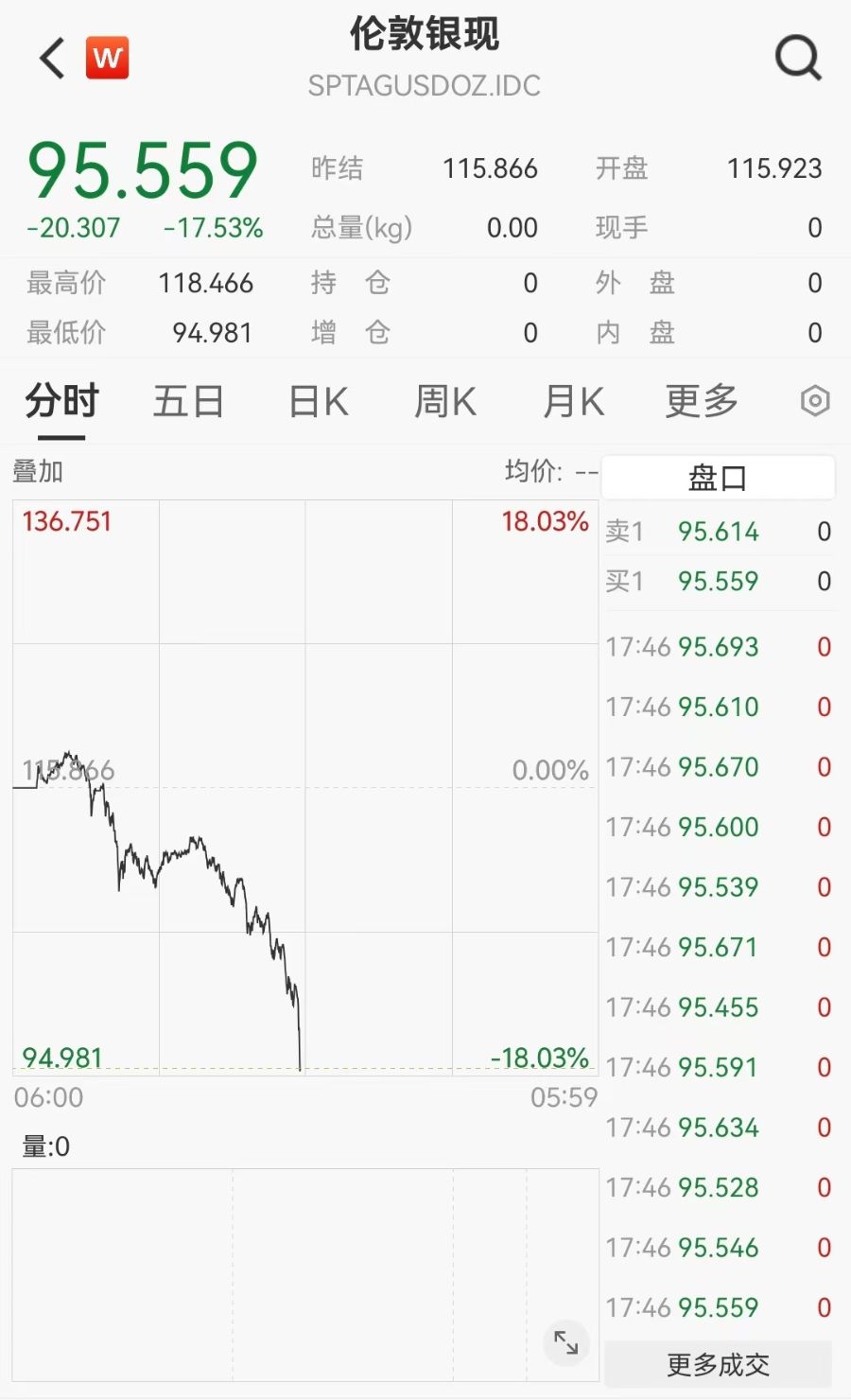 受美联储主席提名人选消息提振美元影响,1月30日,现货白银失守100美元/盎司,跌超17%。现货黄金失守5000美元/盎司,跌超7%。