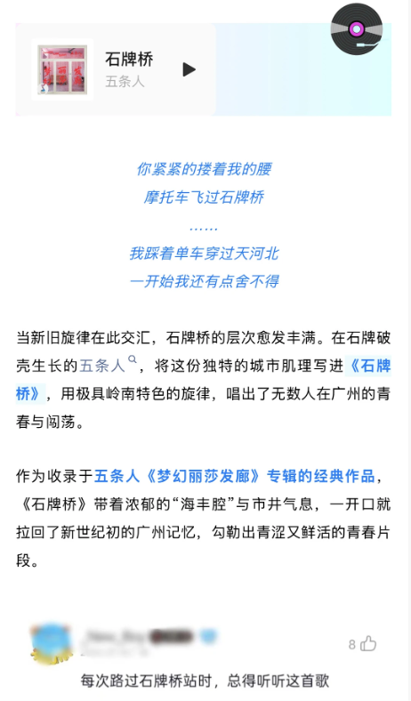 @天河发布挖出“地铁站专属BGM”:五条人《石牌桥》唱出城中村与太古汇的魔幻交织,《体育西路》记录“宇宙中心”的奋斗日常。