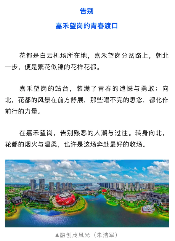 白云机场所在地@广州花都发布喊话:嘉禾望岗,向北一步,花样花都。风景在前方舒展,唱不完的思念都化作前行的力量。