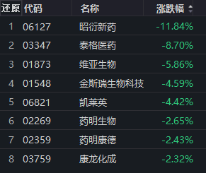 CXO概念持续走弱,昭衍新药跌近12%,泰格医药、维亚生物等跟跌。
