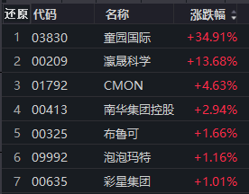 玩具及消闲用品板块震荡走前,童园国际涨近35%,瀛晟科学、CMON等跟涨。