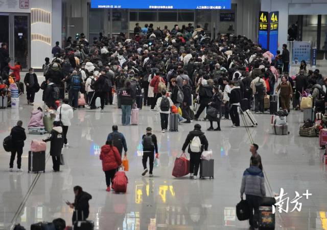 今年铁路春运自2月2日起至3月13日结束,为期40天。国铁广州局预计,节前客流出行整体平缓,客流主要集中在广州、深圳、东莞等大湾区核心城市,以学生流、务工流、探亲流及旅游流错峰出行为主。