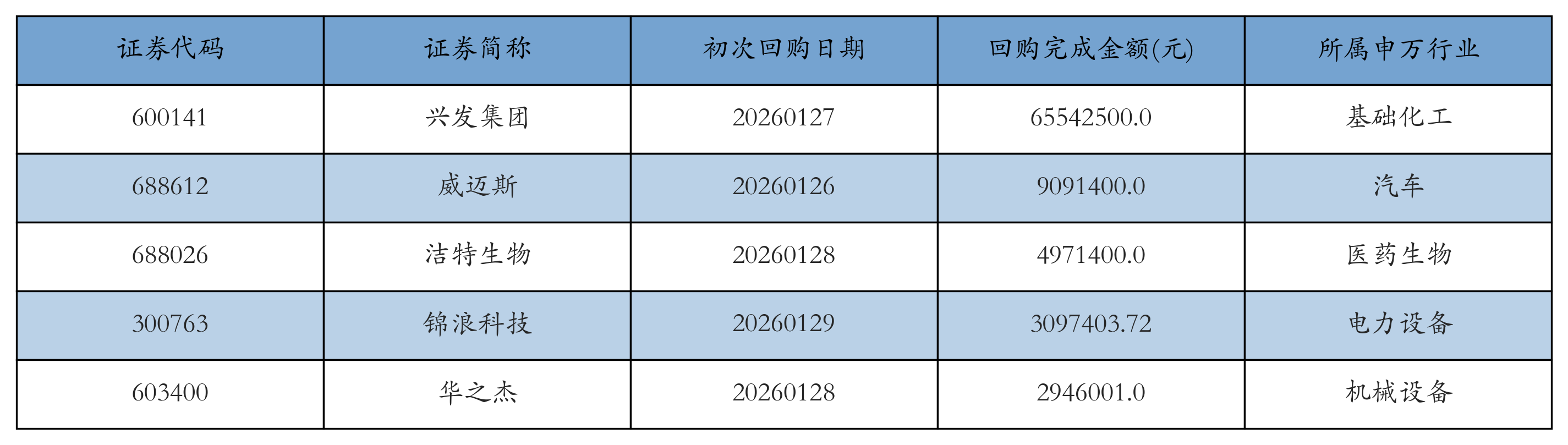 上周共有9条开始执行回购公告,其中执行金额最多的5条公告为: