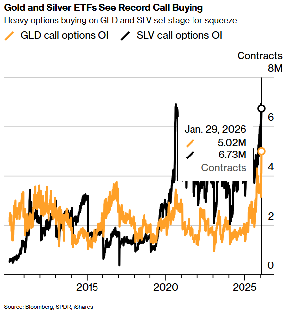 GLD和SLV的大量期权买盘为挤压埋下伏网