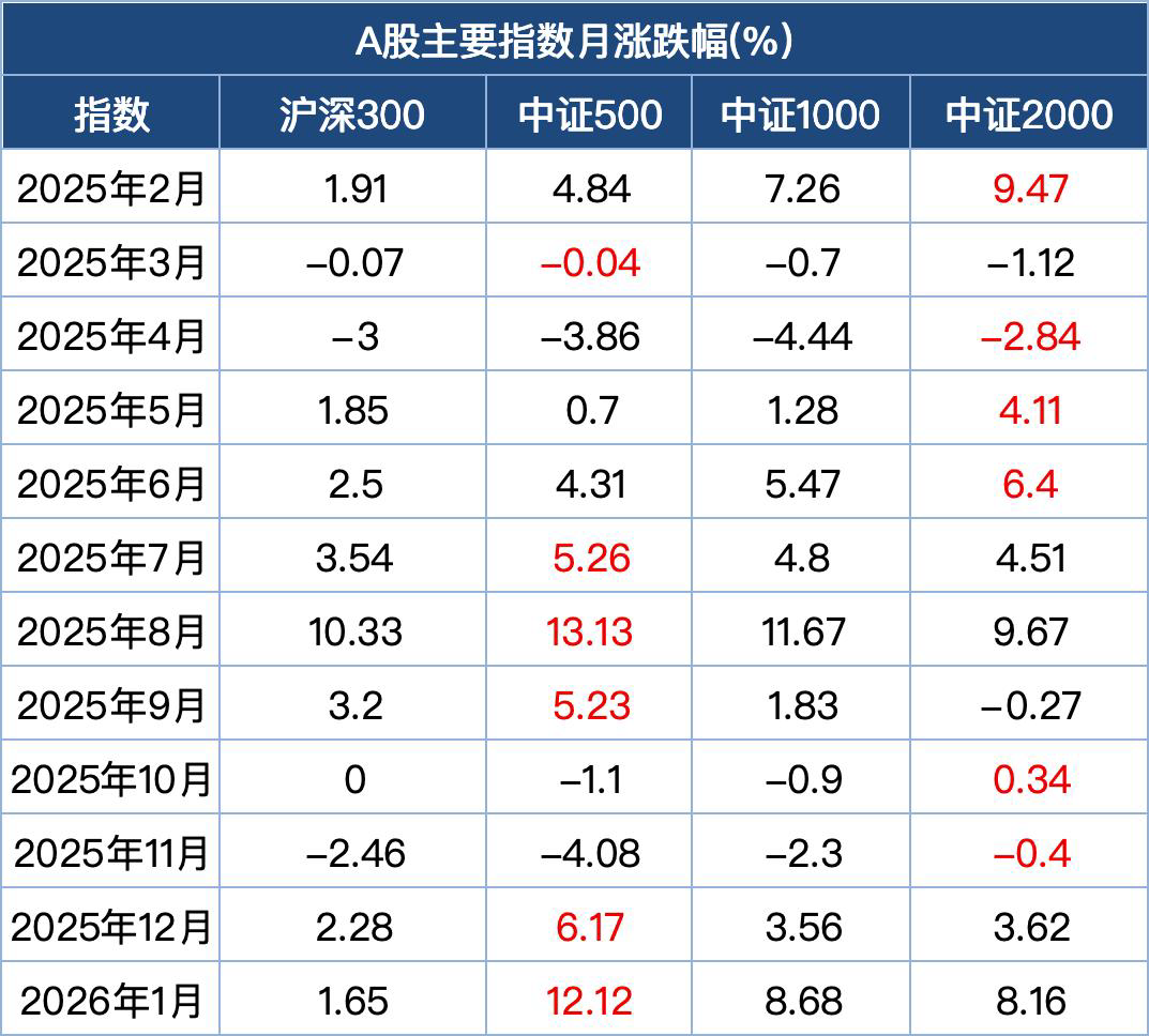 在蛇年期间,代表大盘股的沪深300指数,代表中盘股的中证500指数,以及代表小盘股的中证1000和中证2000指数分别在不同的时间段内有着优异的业绩表现,A股的上涨结构呈现出大中小盘股轮番发力的显著特征。