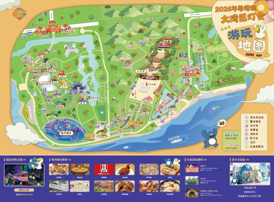 灯会承办单位南沙资产经营集团党委副书记、副董事长、总经理刘胜光介绍,与去年相比,2026年粤港澳大湾区灯会在游玩体验、内容创作、科技赋能、活动供给及基础设施等方面,实现了全方位焕新升级。园区创新打造“白+黑”全时全域游玩体系,游客白天可以体验妈祖祈福、丛林飞跃、户外营地等特色活动,夜间则乘坐小火车沉浸式赏灯观景,实现日夜游玩体验的双向提升。