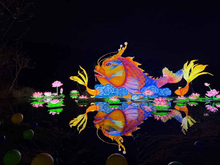 本届灯会设置五大展区,分别为“星河驰骋·骏马腾云”“绿野仙踪·生态和鸣”“逍遥天地·数智未来”“千年一梦·烟火人间”“同根同源·湾区和韵”,以灯为媒,串联起传统与现代、生态与科技、湾区同心的多元内涵。