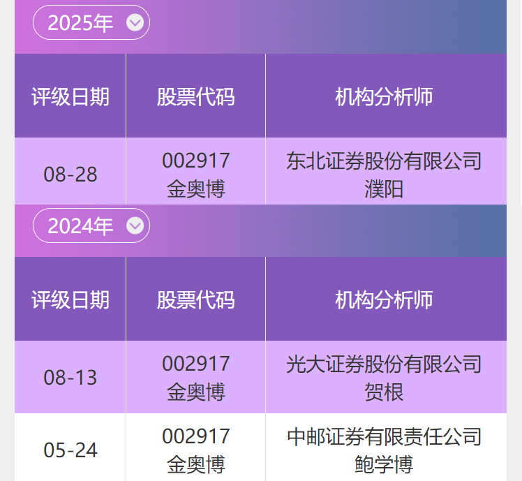 金奥博评级纵览(近3次)