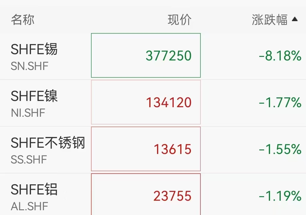 截至9:04,沪银跌18.8%,沪锡跌超8%,沪金微跌0.57%。