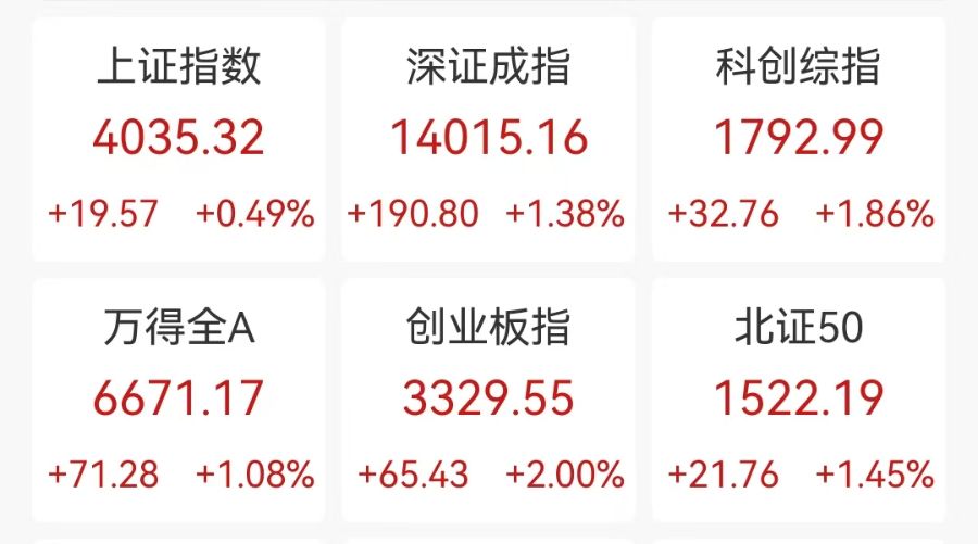 A股收评:深成指探底回升涨超2% 全市场超4800只个股上涨