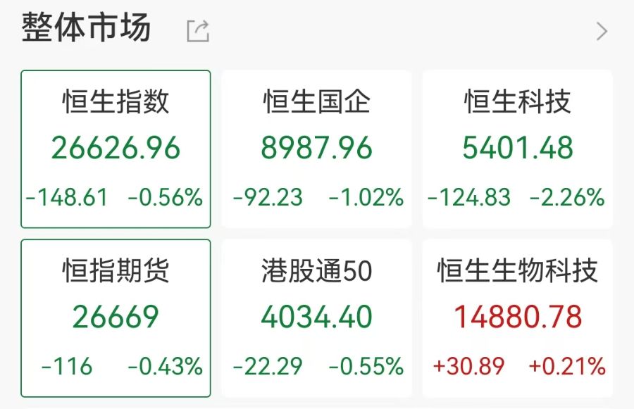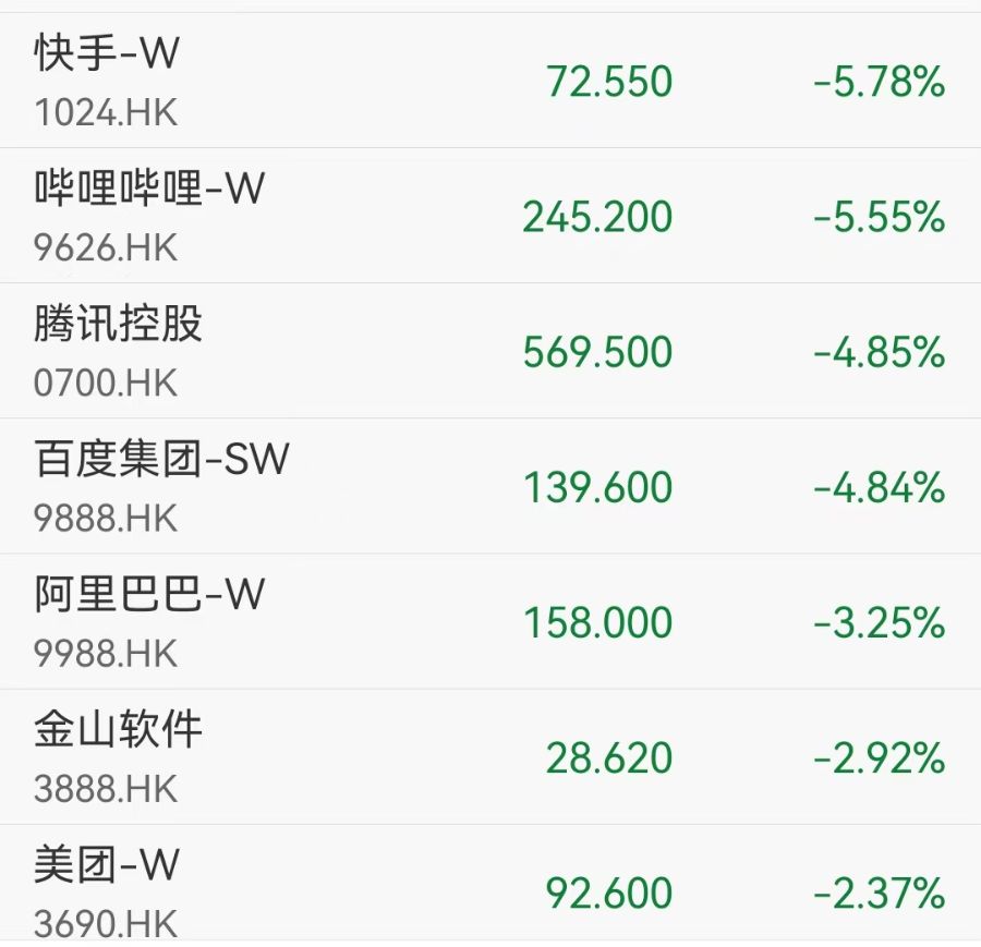 截至11:00,恒生科技指数跌2.26%,快手、哔哩哔哩跌超5%,百度集团、腾讯控股跌近5%,阿里巴巴跌逾3%。