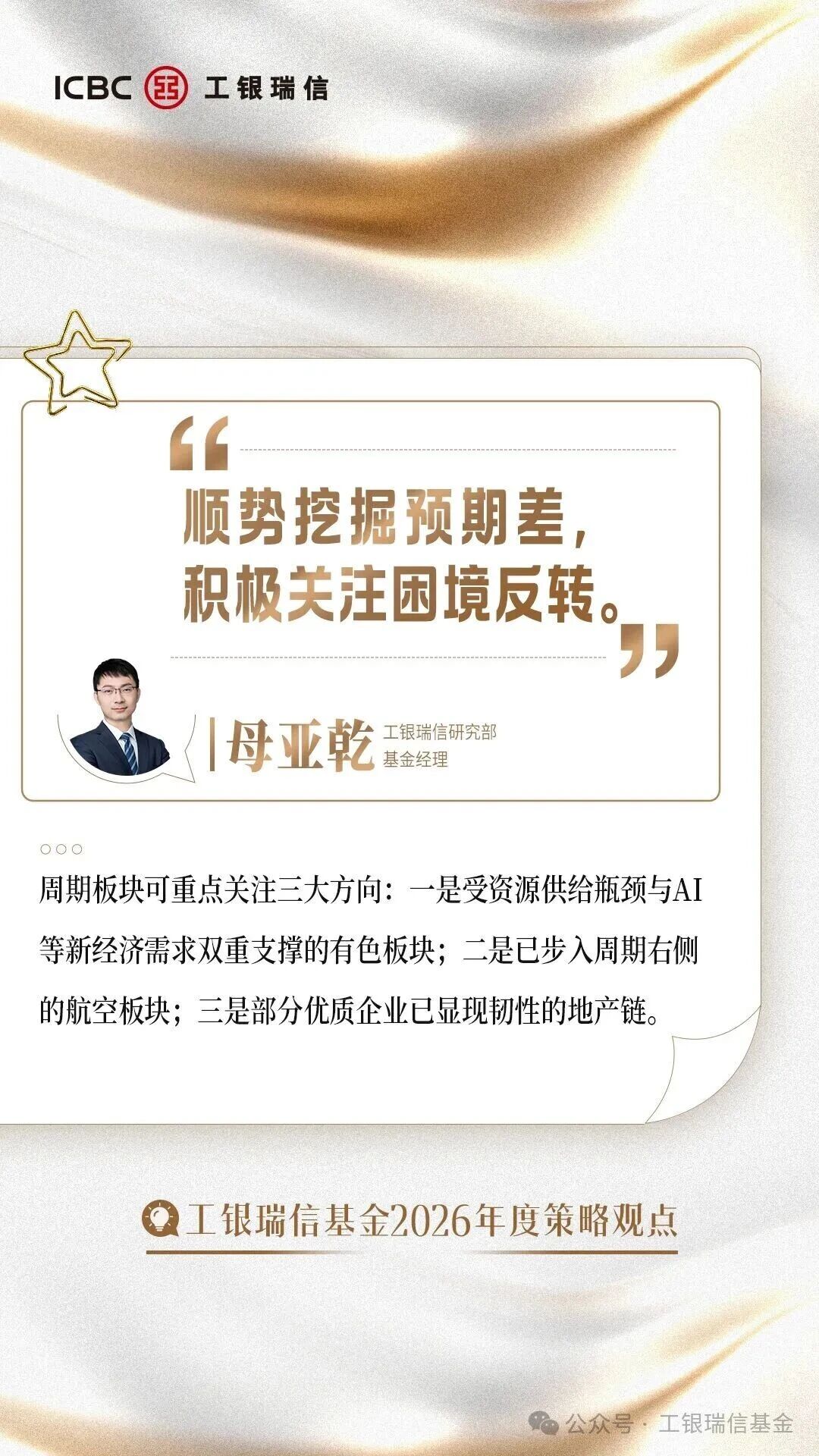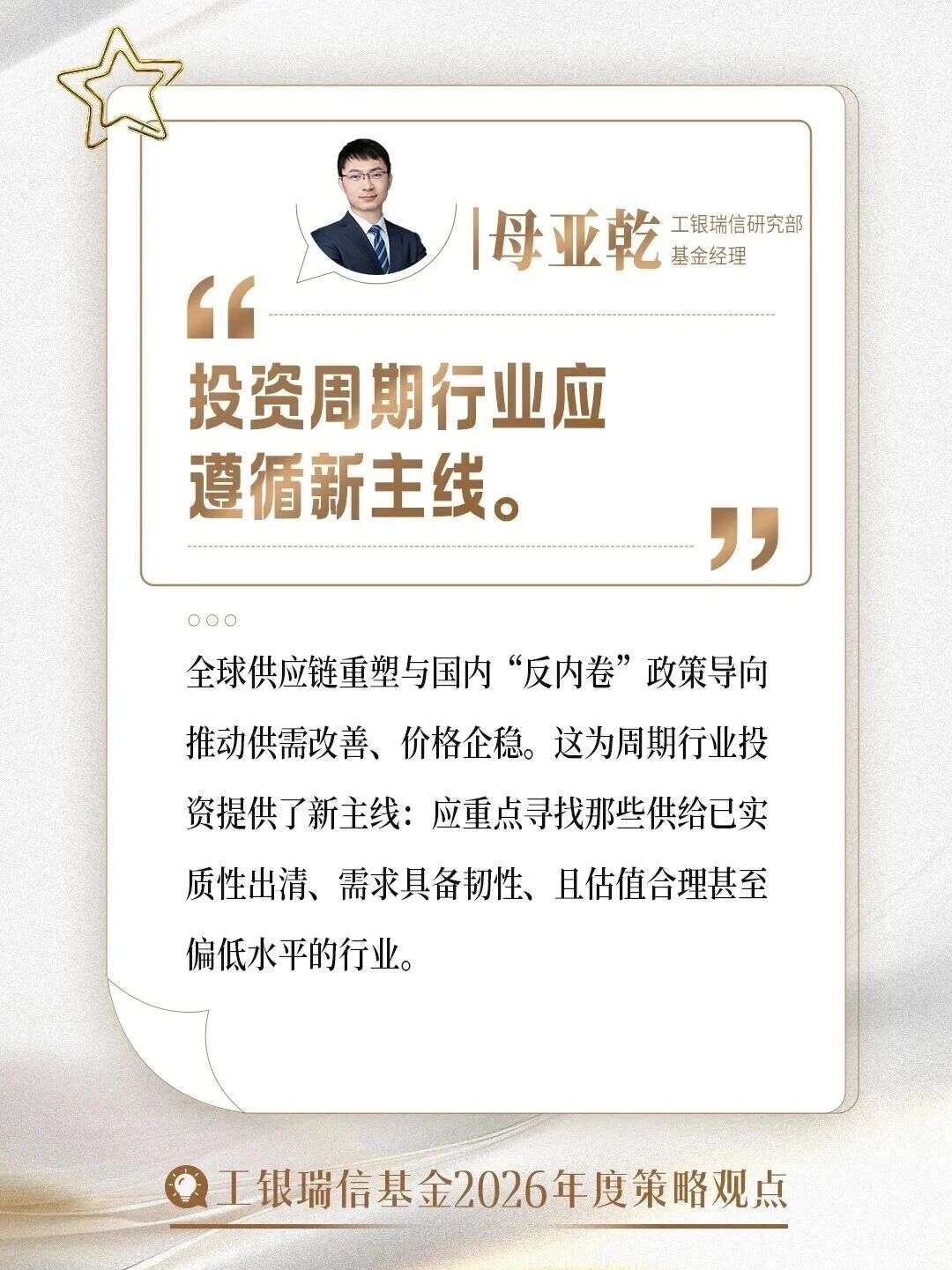 母亚乾:对于2026年周期板块的投资,我的策略可概括为:“顺势挖掘预期差,积极关注困境反转”。具体可重点关注以下三个方向,若以温度作比: