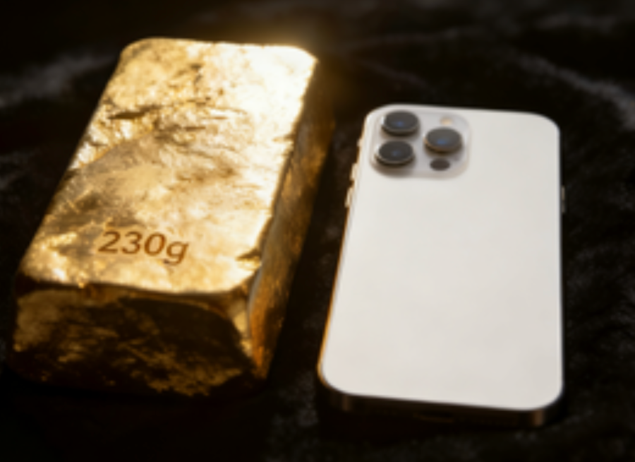 金条与iPhone 15 Pro Max手机对比示意图 图/本报记者用AI生成