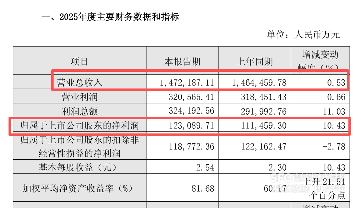 2月4日下午,重庆啤酒披露了2025年度业绩快报:营业总收入147.22亿元,同比增长0.53%;营业利润32.06亿元,同比增长0.66%;归母净利润12.31亿元,同比增长10.43%,此外销量较上年同期增长0.68%。