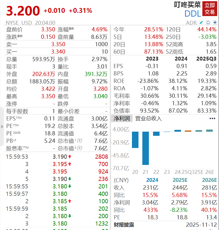 资本市场上,美团今日港股涨1.79%,最新市值报5733亿港元。叮咚买菜美股盘前涨近5%,最新市值为7.6亿美元。