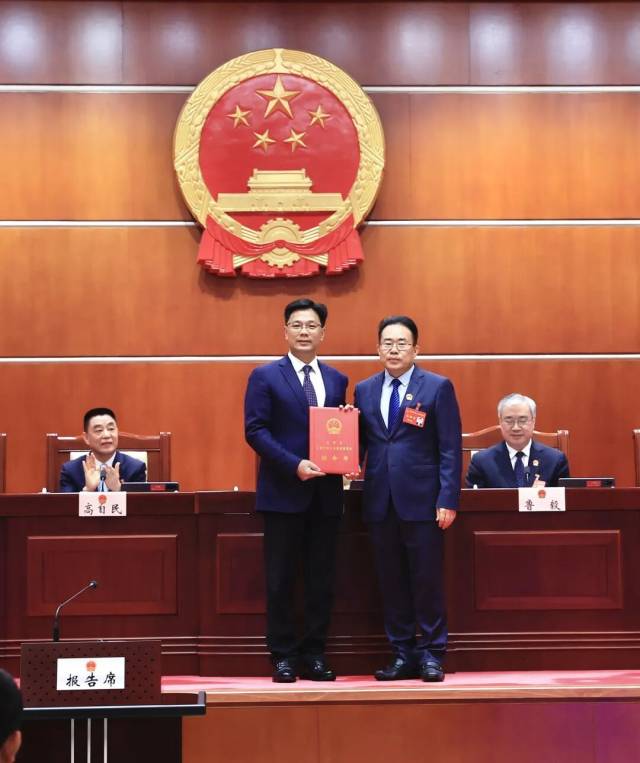 市人大常委会主任戴运龙为新获任命的深圳市副市长、市公安局局长郑泽晖颁发任命书