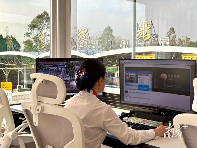 “未检测到车牌,请及时处理!”在广韶高速钟落潭站的智慧云舱内,“叮”一声清脆的系统提示音响起,电脑显示屏自动弹出一个特情处理窗口,提醒现场有特情事件待处理。工作人员通过远程值守系统调取车辆视频、通行流水信息,并利用系统特情管控中心与司机沟通核实后,车辆顺利取卡通行。