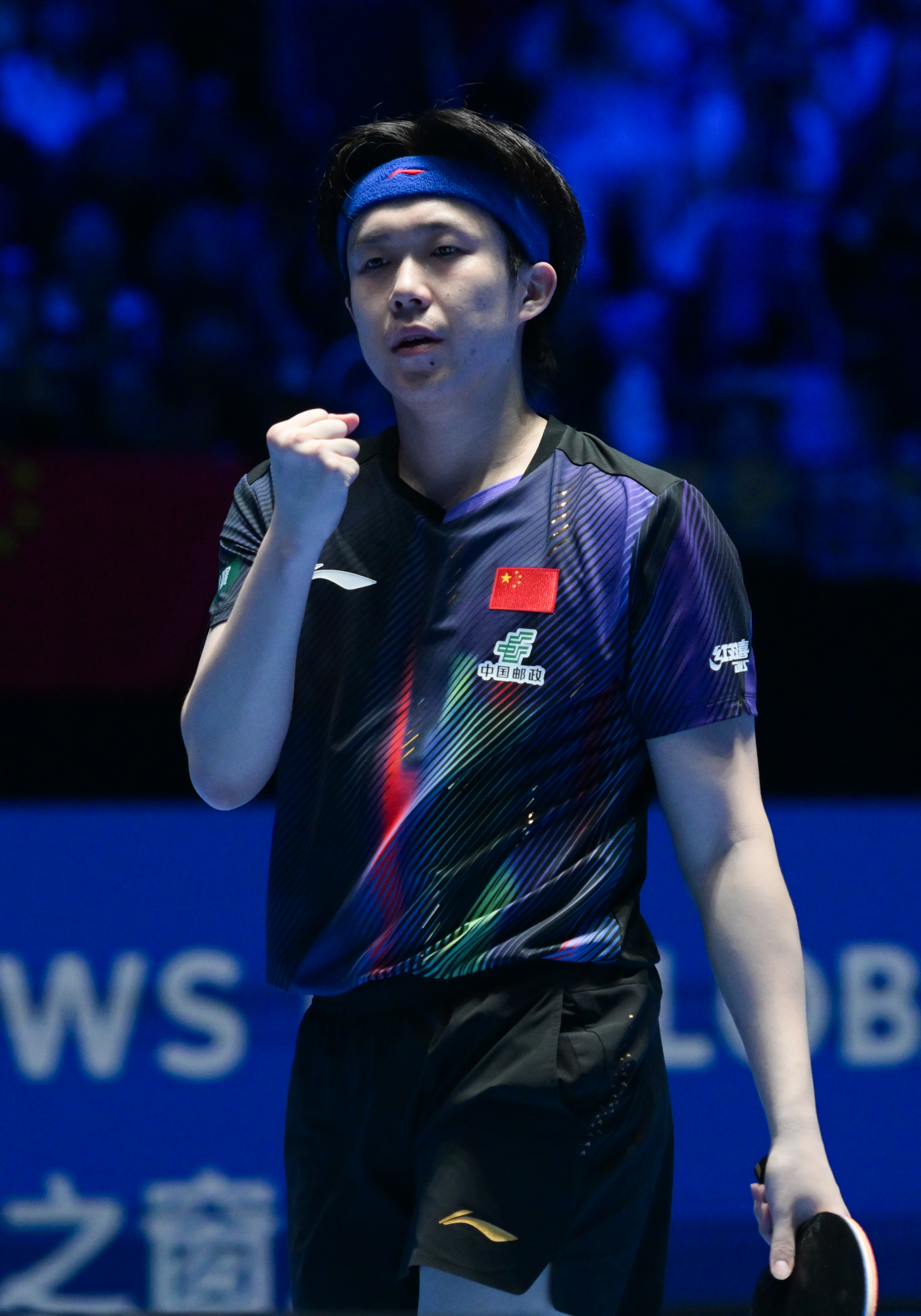 2月8日,王楚钦在得分后庆祝(资料图)。新华社记者 杨冠宇 摄