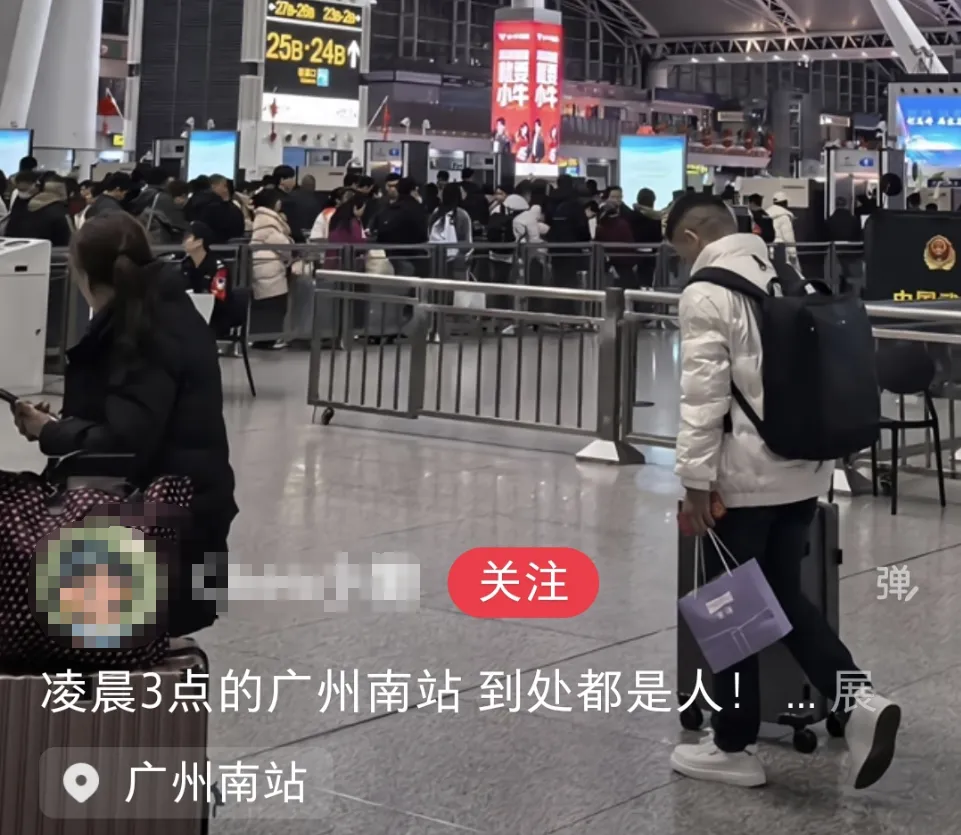 2月9日,在社交平台,有网友发文表示,凌晨3点的广州南站就有许多旅客在候车。
