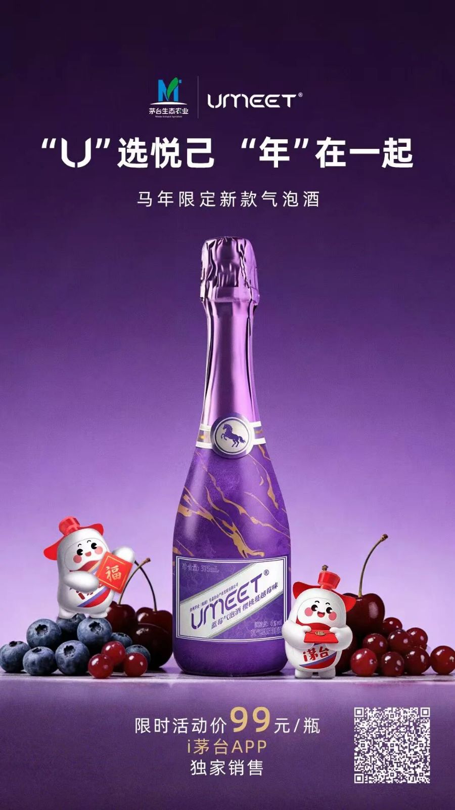 2月5日,茅台生态农业公司推出的UMEET“遇见生态美系列-蓝莓气泡酒(樱桃蔓越莓味)”在i茅台APP正式开售,这款产品是悠蜜的马年限定新款气泡酒。平台数据显示,产品上市首日销量即达13000+瓶,销售额约123.4万,创下i茅台低度果酒赛道新品首销纪录。
