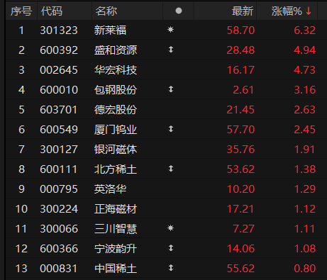 2、稀土产品价格加速上涨 稀土永磁板块午后回暖