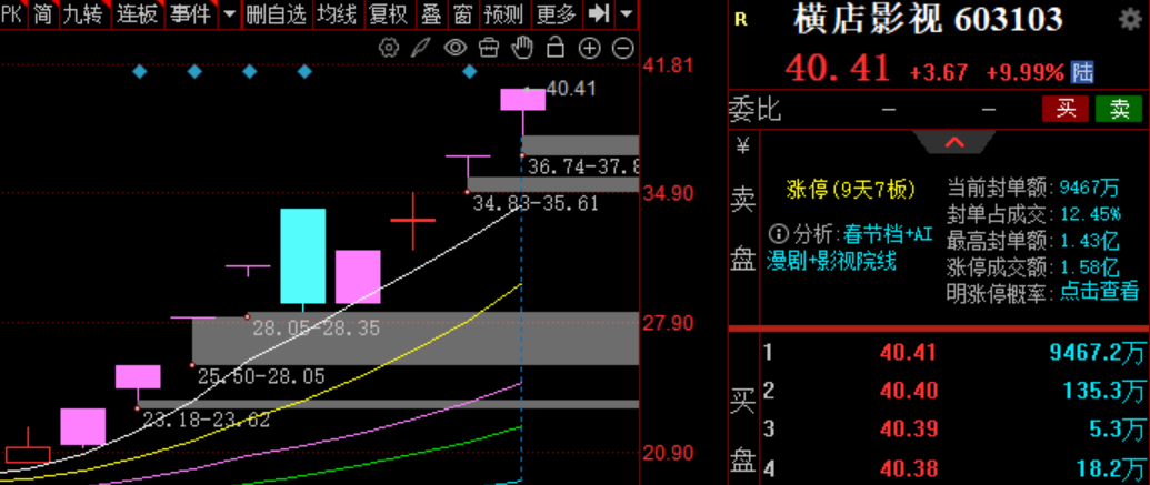 市场预期Seedance 2.0给影视传媒行业可能带来巨大的降本增效前景,相关板块掀起涨停潮。中文在线、光线传媒、捷成股份等20cm涨停,其中横店影视走出9天7板。