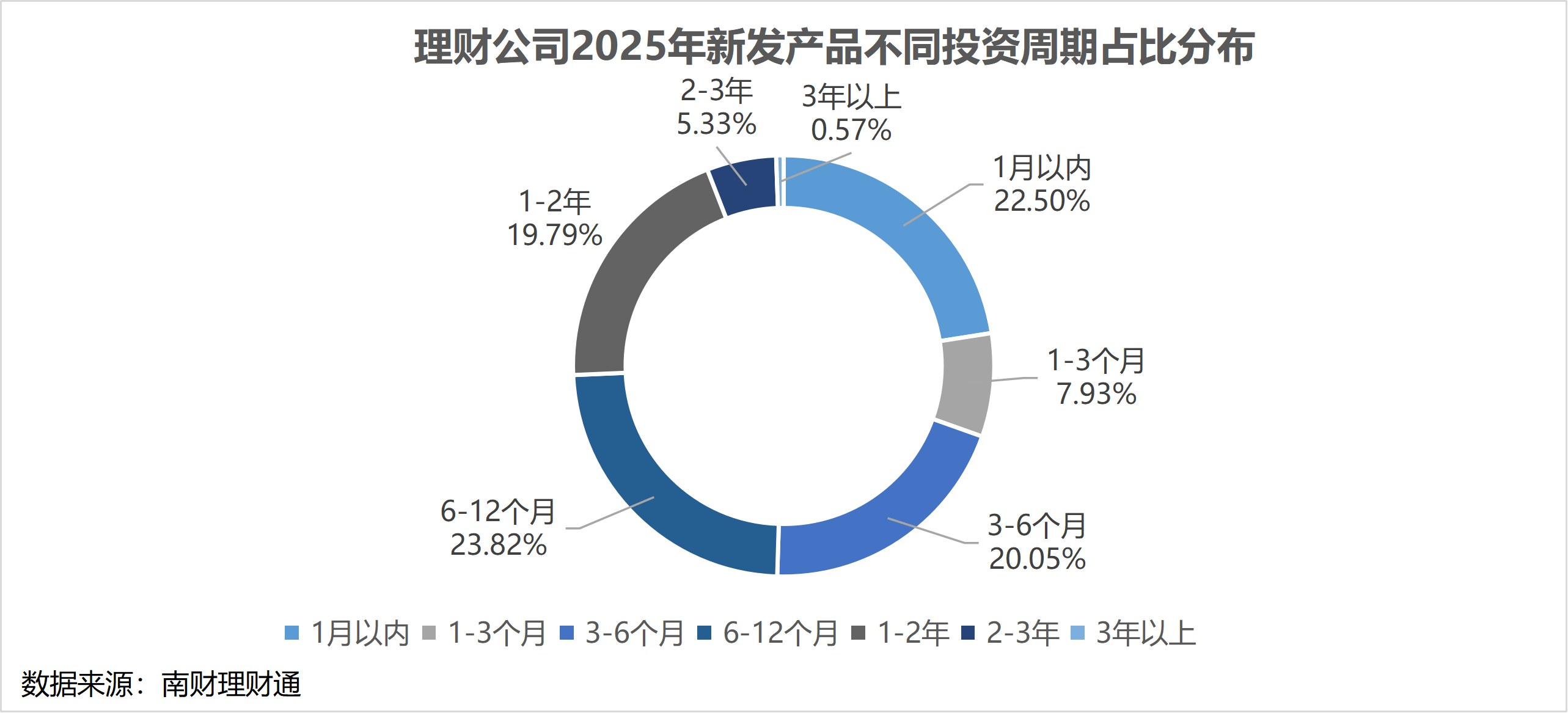 投资周期上,新发产品久期短期化显著,6-12个月期限产品仍为第一大投资周期类型,但占比已经从2024年末的28.22%下降到2025年的23.82%,同时曾经的第二大投资周期类型3-6个月期限产品占比也有明显下降,2025年占比略超20%,同比2024年下降了4.63个百分点。取而代之的是1月以内期限的产品,占比从2024年的15.57%提高到22.50%,成为第二大投资周期类型。