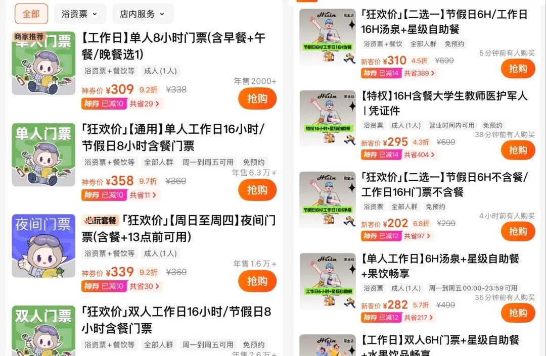 打开美团、大众点评等平台,洗浴中心的套餐更是琳琅满目。从单人到双人,从工作日到周末,从儿童到成人,这些细分套餐精准击中了不同客群的需求,从年轻人到家庭用户,从休闲放松到临时办公,几乎覆盖了所有潜在消费场景。