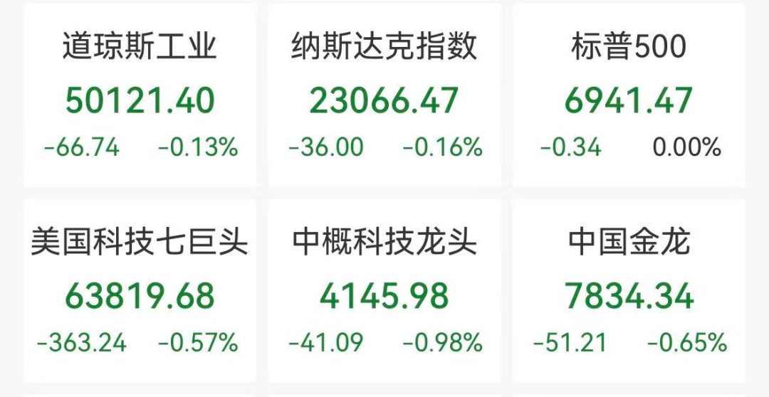 中概股多数下跌,纳斯达克中国金龙指数跌0.65%,热门个股方面,虎牙跌超5%,晶科能源跌逾5%,阿特斯太阳能跌超4%,网易跌超4%,霸王茶姬跌近4%。涨幅方面,世纪互联涨超12%,金山云涨约10%,哔哩哔哩、华住集团、蔚来、名创优品涨超2%。