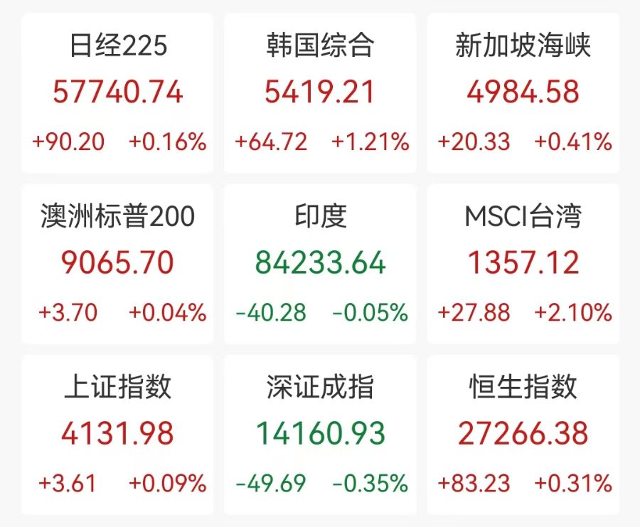 日经225指数涨0.58%,报57986.86点,创纪录高位。资生堂股价一度上涨13%,之前公布第四季度财报。