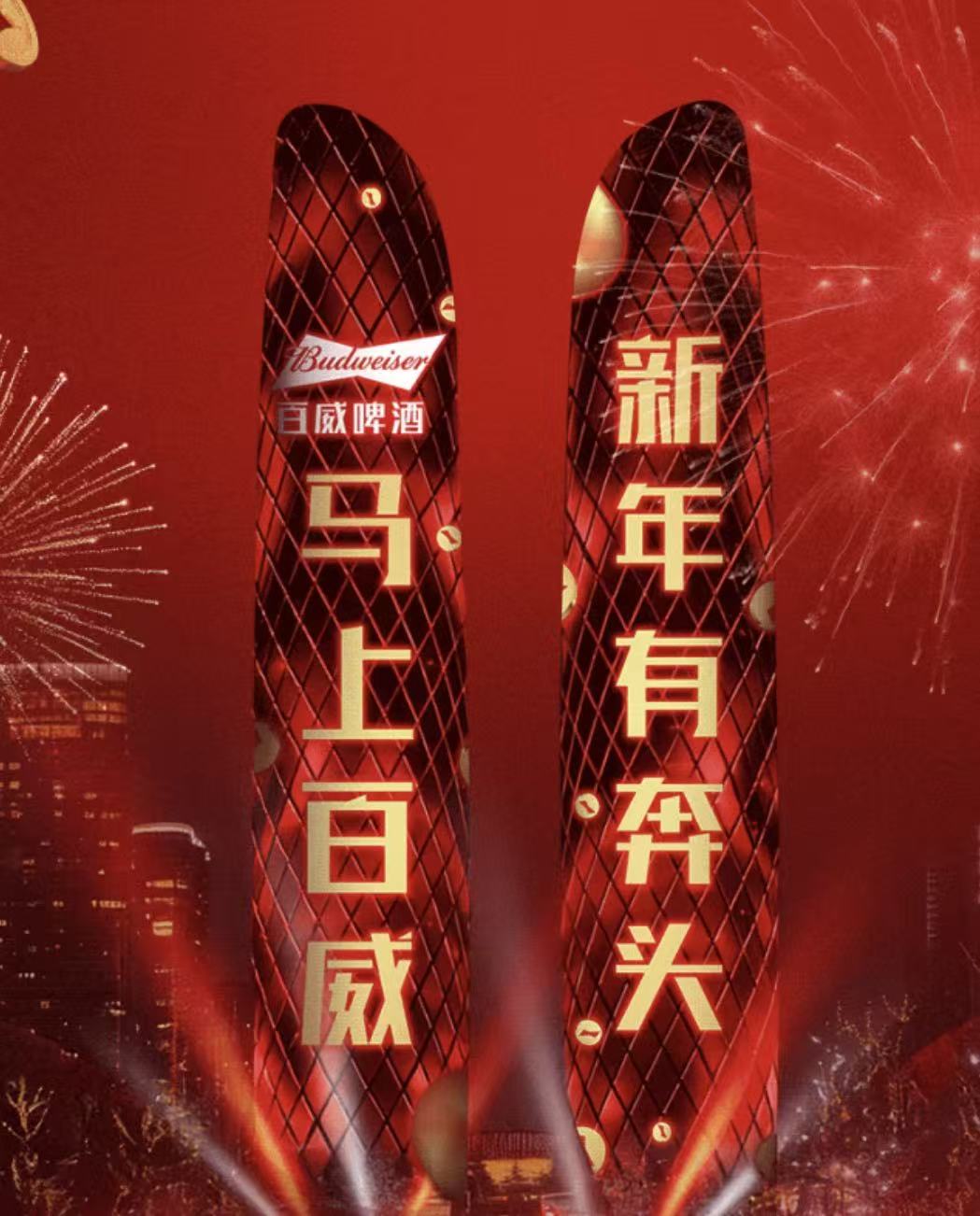 去年12月以来,百威已经以“马上百威 马年有奔头”为主题推出了一系列营销活动,包括与品牌大使王嘉尔合作在非即饮渠道以及O2O渠道推出马年限定产品、与B站合作跨年晚会、在全国12座城市举行倒数庆祝活动等,希望以此提升百威在家庭、社交和送礼场合的影响力。