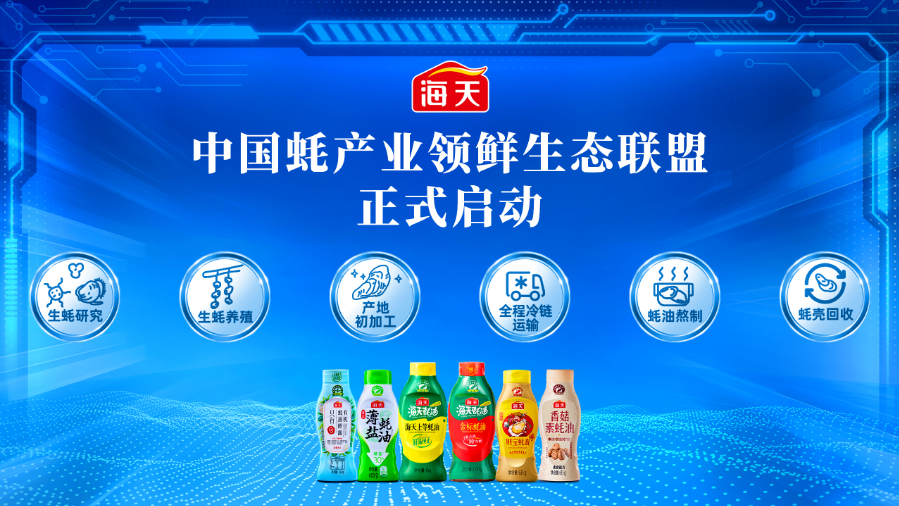 核心突破:海天牵头发起“中国蚝产业领鲜生态联盟”,坚持“从海洋到餐桌”的全程高品质锁鲜,全链管控守护每一瓶蚝油的本味。