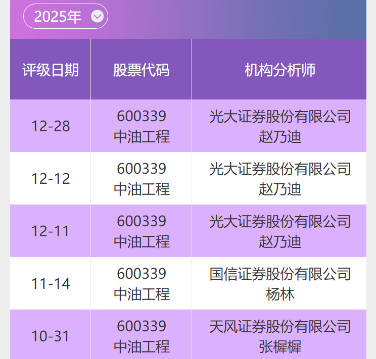 光大证券的赵乃迪是近年点评公司次数最多的一位分析师,2019年至2025年共提及公司26次,去年提及了8次,对公司的熟悉度可谓居前。去年12月28日,赵乃迪点评了公司签署哈萨克斯坦管道项目EPC合同的公告,表示项目合同额4.24亿美元,有利于中亚地区市场拓展;市场开拓有序推进,海外新签合同额持续增长。维持公司盈利预测,预计公司2025-2027年归母净利润分别为7.38亿元、8.25亿元、9.29亿元,公司背靠中国石油集团资源优势,持续开拓海内外市场,石化行业对外合作进一步加深,公司有望持续受益,维持对公司的“增持”评级。赵乃迪当前在分析师评价(石油石化行业)财务类排行榜位列第7名。