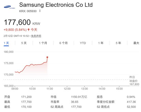 其中,存储芯片巨头领涨。三星电子股价涨至记录高位,目前涨幅已扩大至近6%;而SK海力士目前涨近4%。
