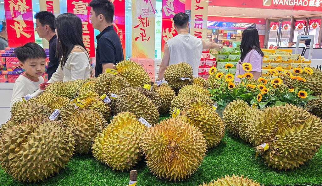 马来西亚的榴莲、瑞士的巧克力、法国的洗发水……记者在现场看到,很多顾客的购物篮里都塞得满满的。一些热销产品,一两个小时就需要往货架上补货。在水果区,榴莲和车厘子都是热卖商品。