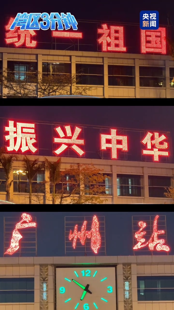 每当夜幕降临,广州火车站楼顶上“统一祖国 振兴中华”八个大字便会准时亮起。对来自天南地北的旅客们来说,它不仅照亮了脚下的回家路,更是一种无声的凝聚。即便行色匆匆,不少旅客在进站前依然会停下脚步,举起手机,再次将这八个标志性的大字记录下来。