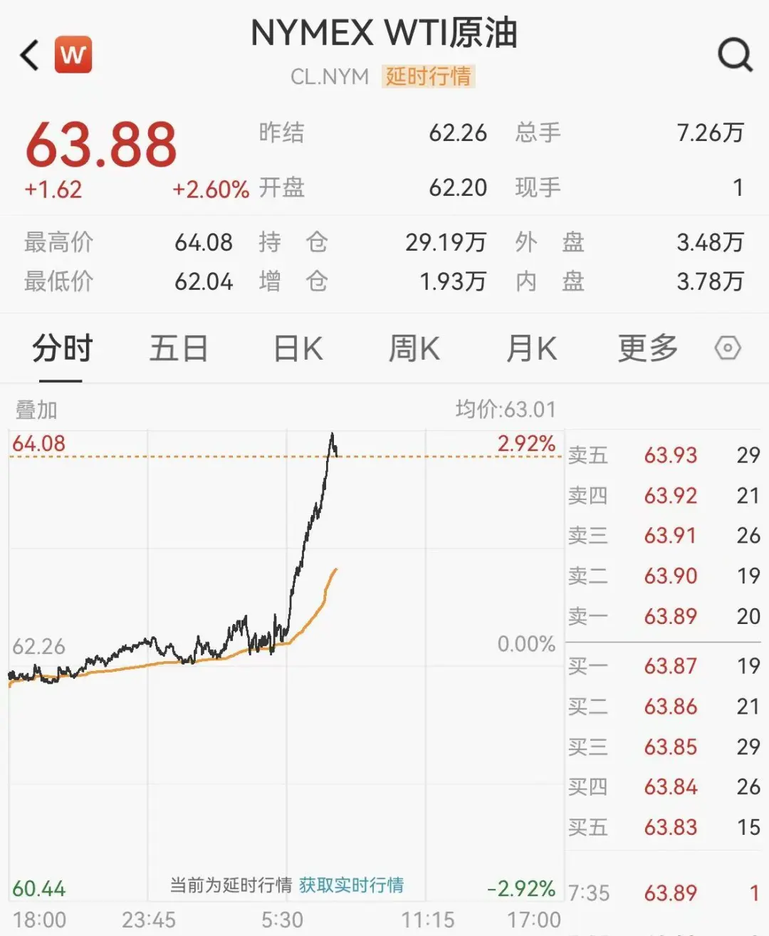 国际油价急速拉升,WTI原油期货涨幅扩大至2.6%,报63.88美元/桶;布伦特原油期货涨幅扩大至2.65%,报69.21美元/桶。消息面上,据证券时报e公司报道,斯洛伐克政府宣布石油紧急状态,将动用国家石油储备。
